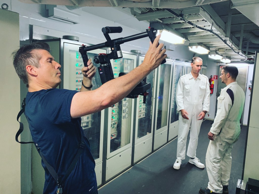 I spent a good part of two years with a team producing environmental training videos for the Carnival Corporation training facility in Amsterdam. I can tell you a little about the work and show some screen shots but can’t show the actual videos here. A fascinating project getting to crawl around in the belly of a couple of cruise ships shooting traditional and 360 training videos for the crews of several cruise lines.